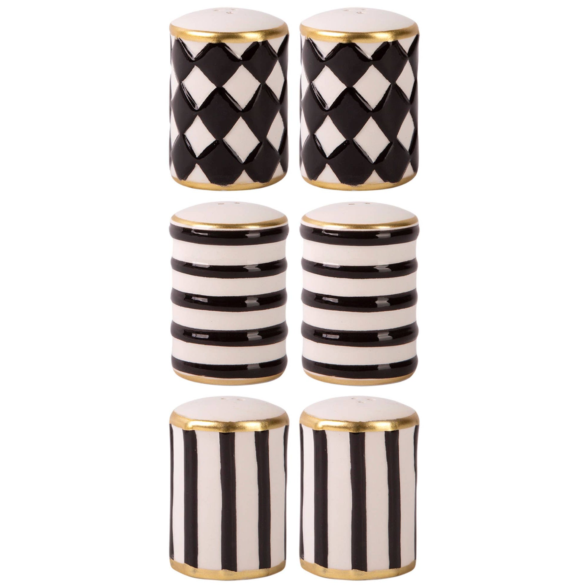 Add a touch of texture to your table with theses black and white embossed salt and pepper shakers. choose from three unique styles to suite your vibe.