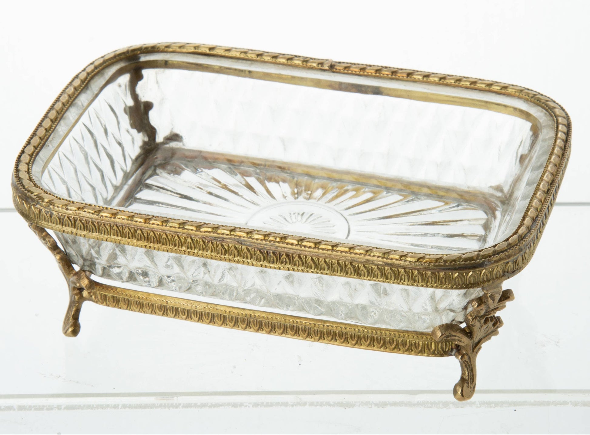Vintage inspired, rectangular soap dish in metal frame.