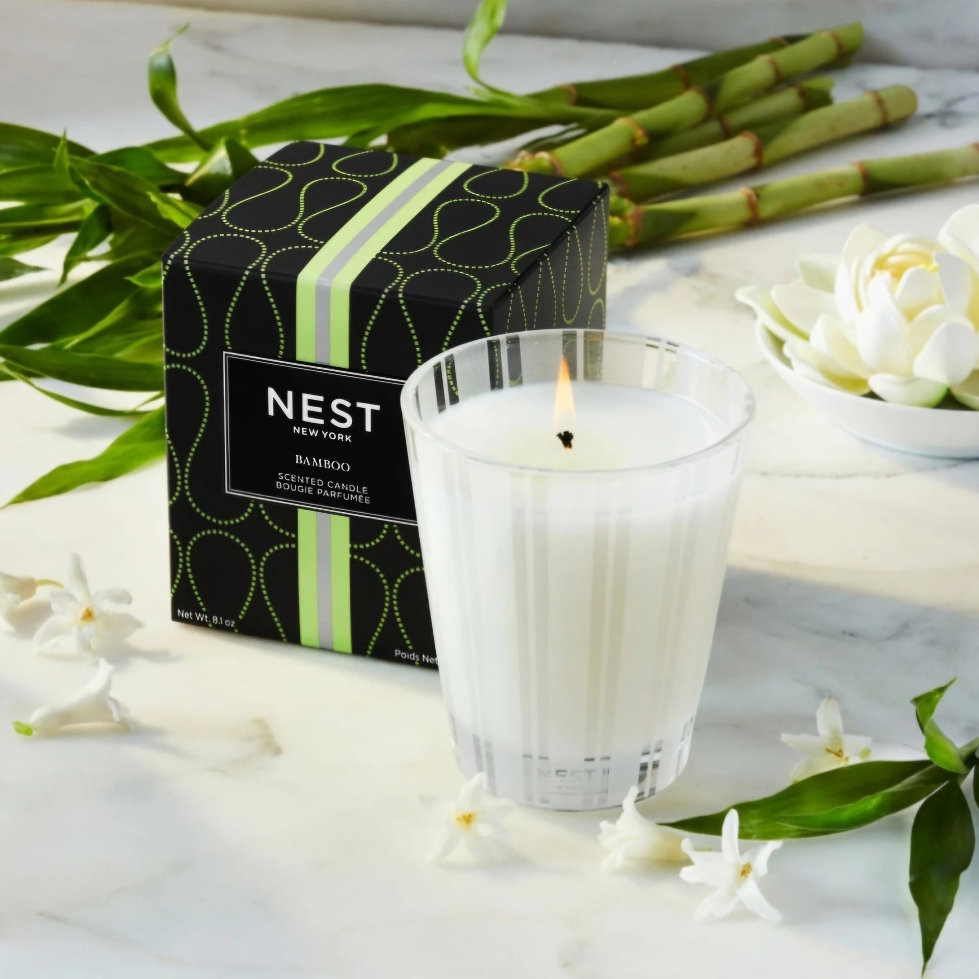 Fill your home with the welcoming aroma of Bamboo, a best-selling fragrance. This classic candle blends white florals, rich green notes, and a hint of sparkling citrus for a fresh, inviting scent.