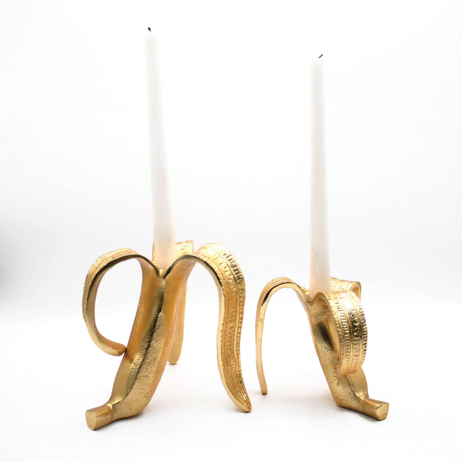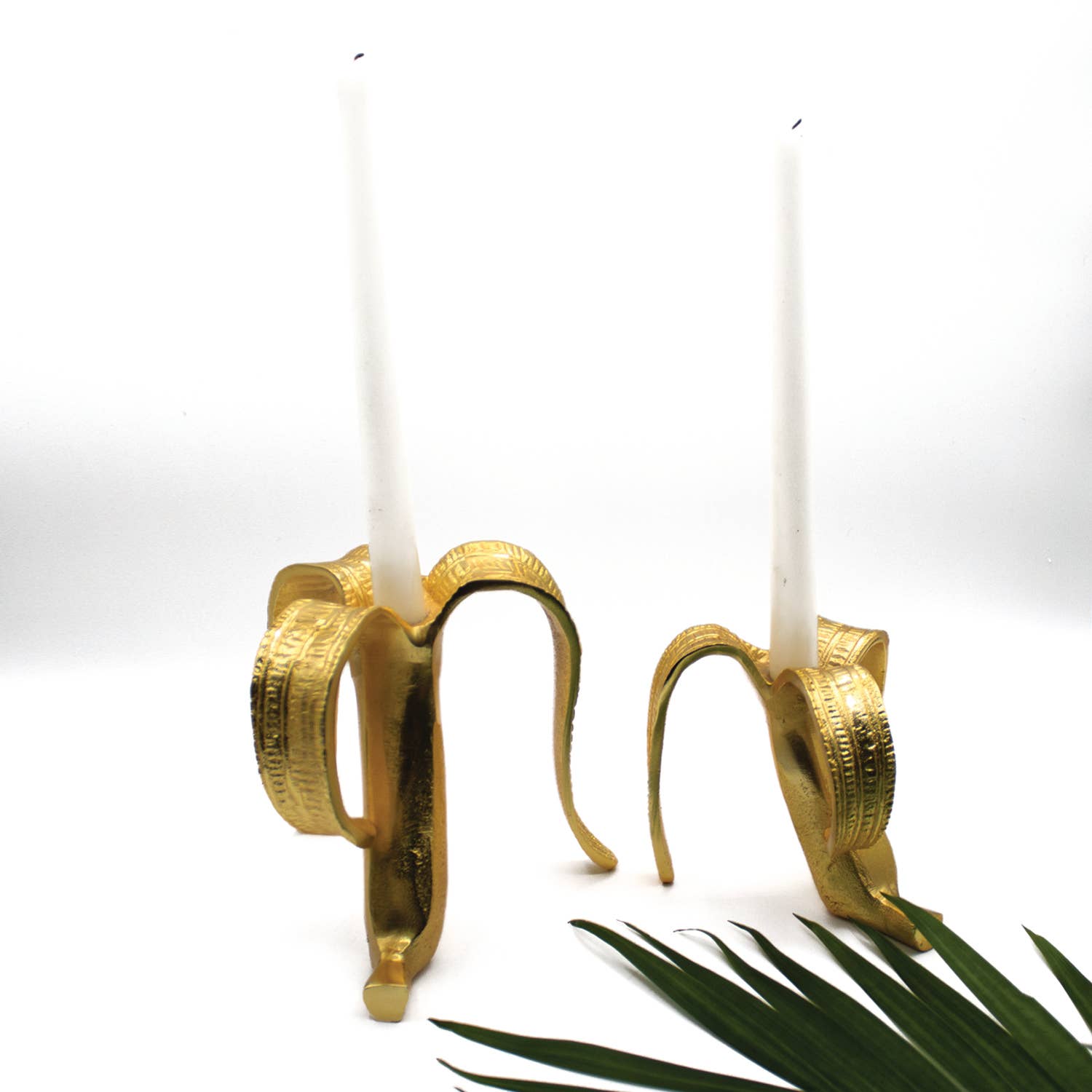 Brighten up your space with a dish of elegance (and many a hint of whimsy) with our banana candle stick set. This chic duo, in sleek gold finish aluminum is perfect for any decor.