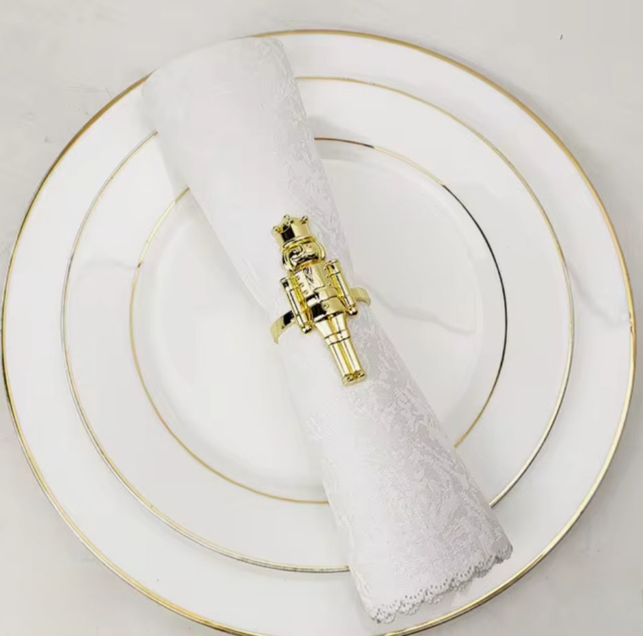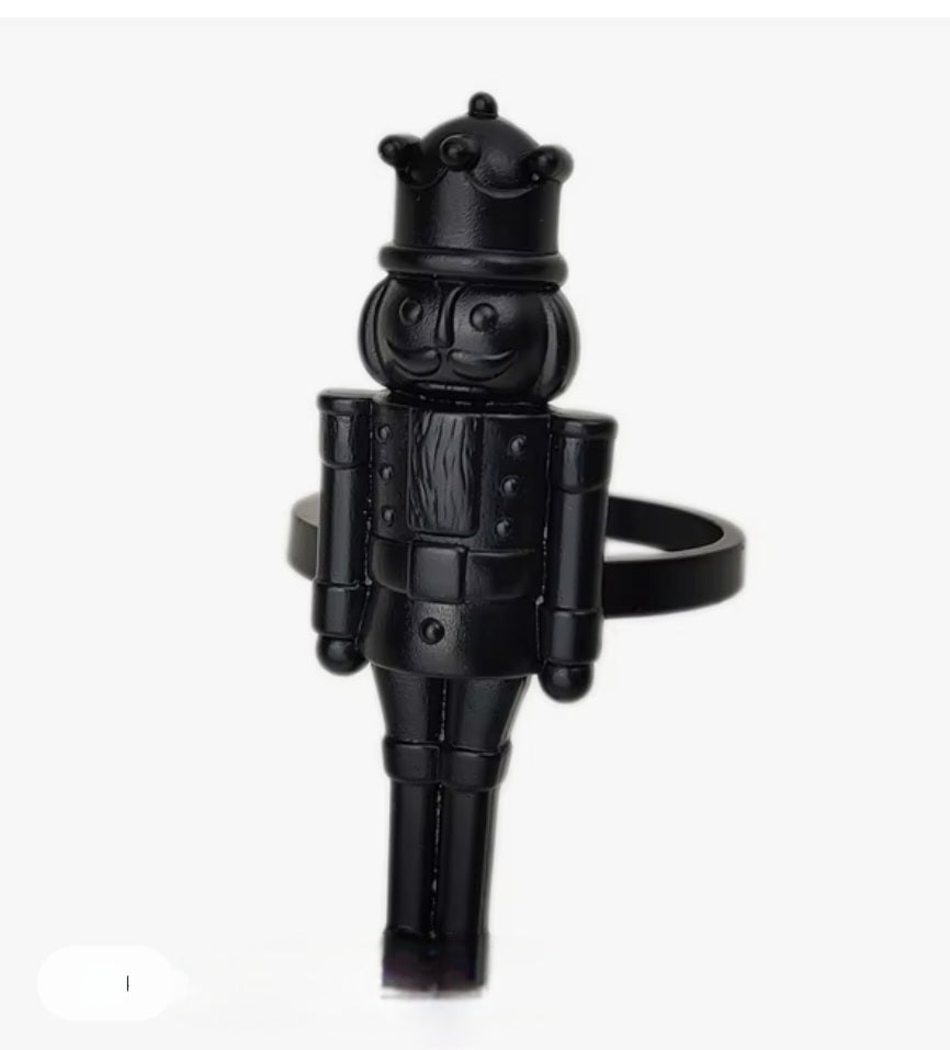 Add charm to your holiday table with these black metal toy soldier napkin rings.