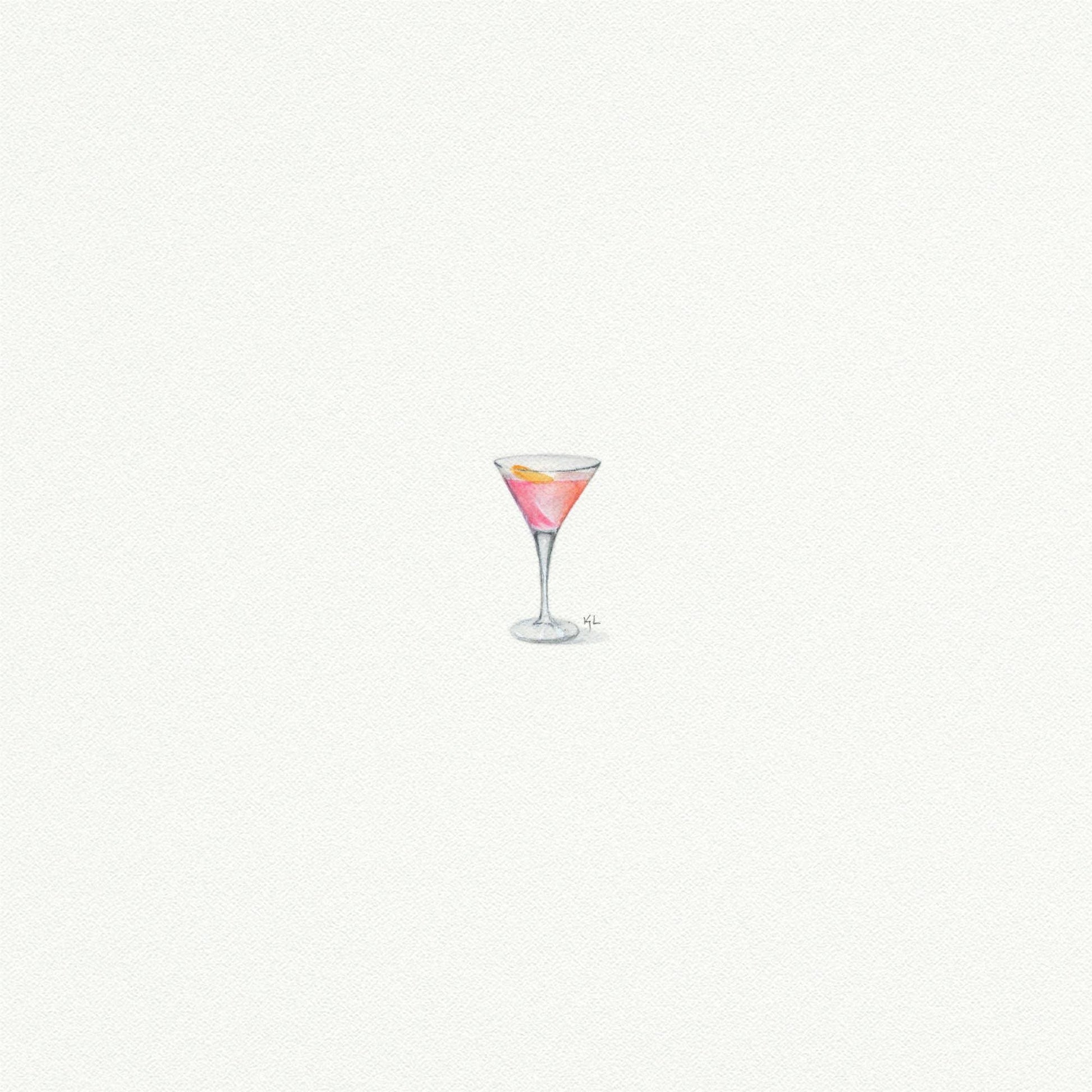 I believe in the power of positive drinking. Miniature watercolor reproduction of a cosmopolitan mixed drink.