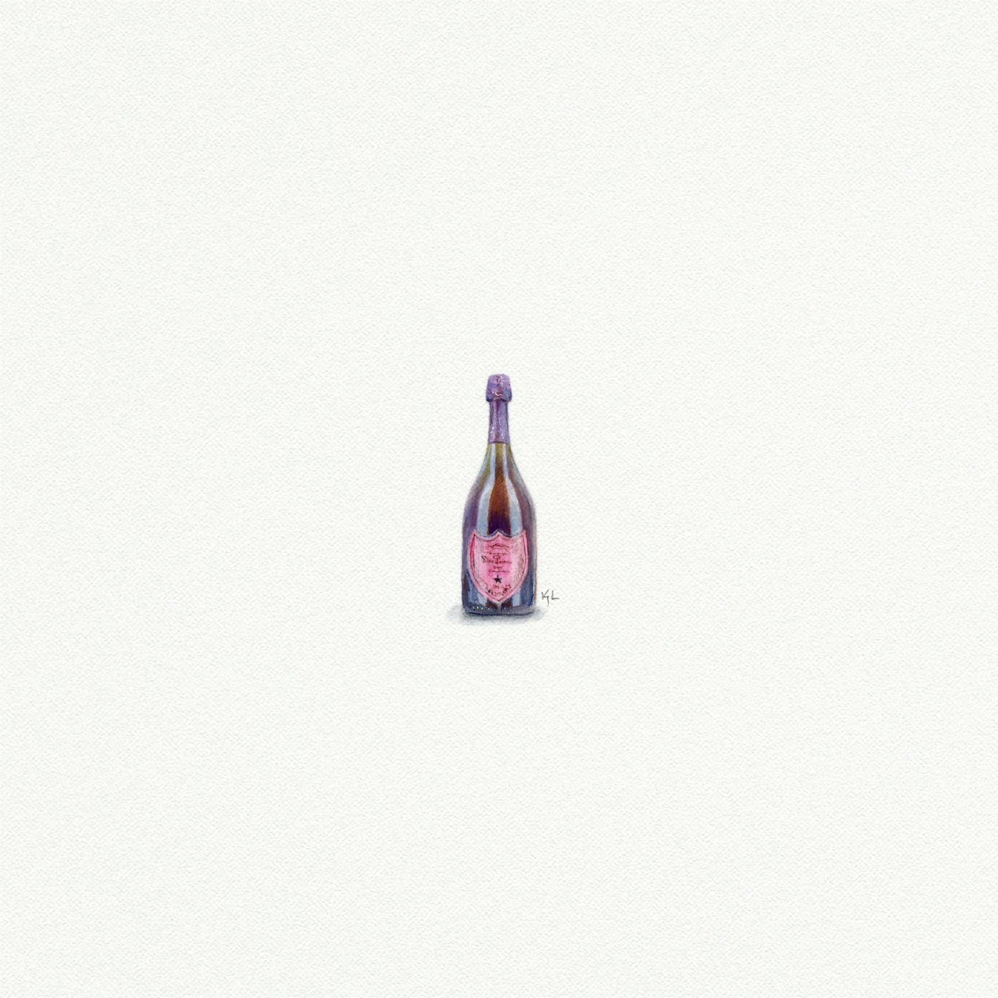 "I only drink champagne on two occasions. When I'm in love and when I'm not." -Coco Chanel Miniature watercolor reproduction of Dom Perignon Champagne bottle.