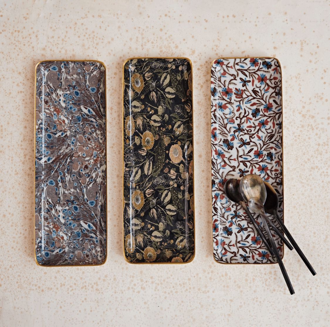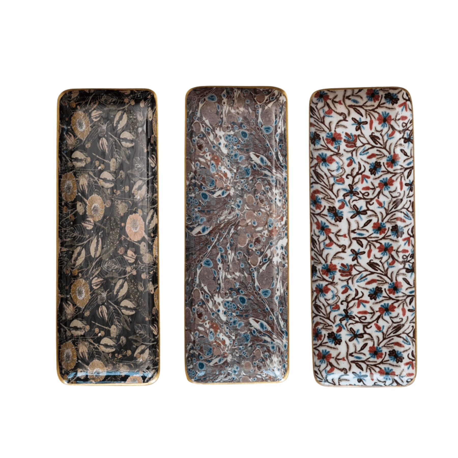 Elevate your hosting game with our exquisite serving trays, each designed to add a touch of elegance to any occasion. Sold separately, these trays are outlined in luxurious gold, making them a stunning addition to your home decor.