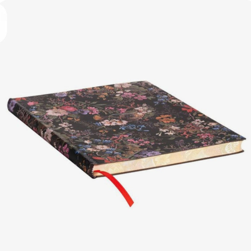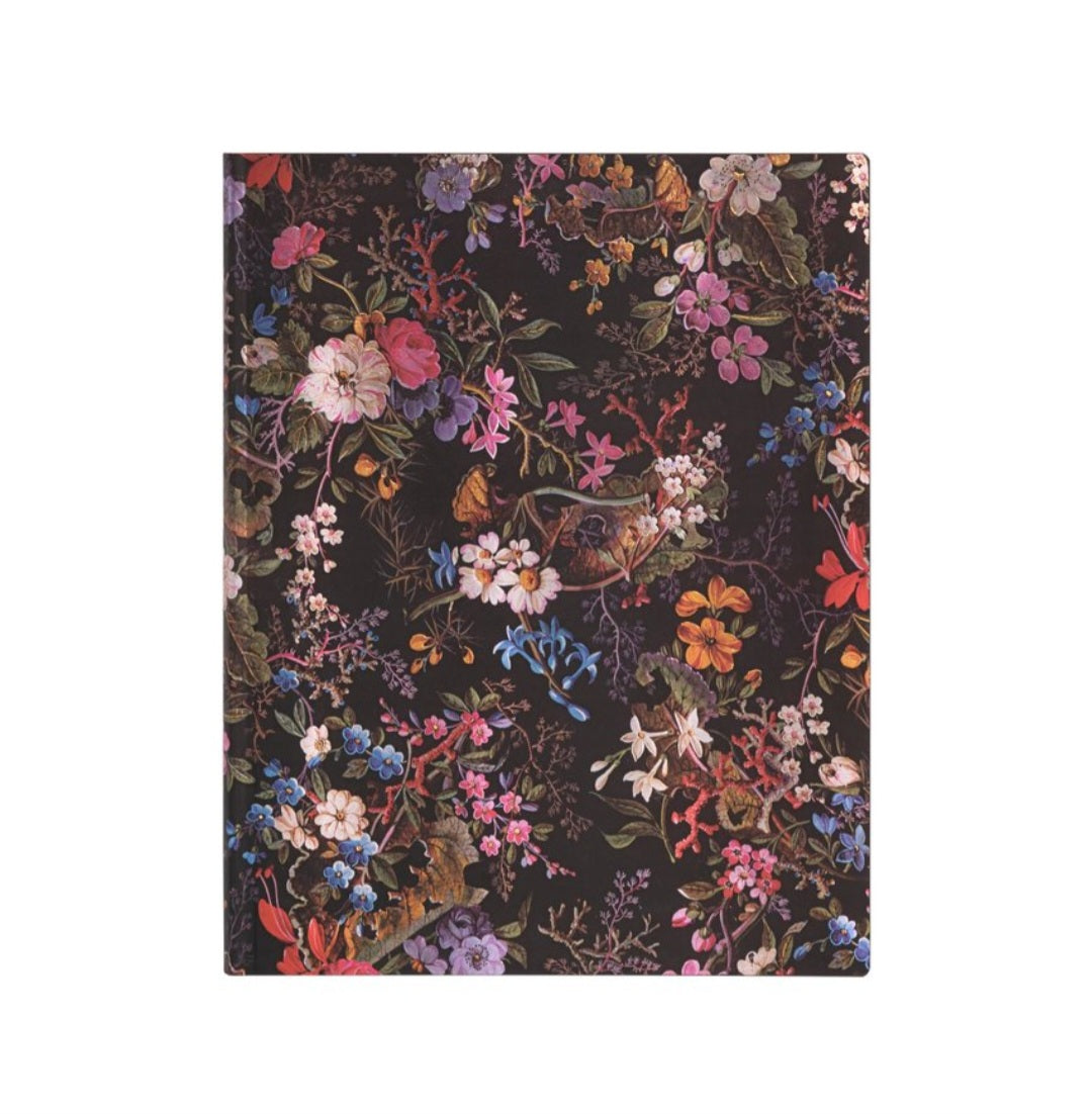 The eternal appeal of a classic floral design is captured in the work of Irish illustrator William Kilburn (1745-1818). With winding twigs and colorful petals set against an inky black background, this Floralia journal design is emblematic of Kilburn's ability to blend local and exotic flora into a harmonious pattern.