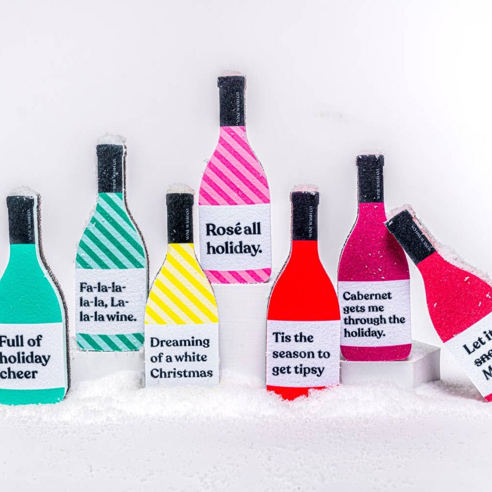 Add a *pop* of fun to your kitchen with our "Fa-la-la-la-la, la-la-la wine" green striped cleaning sponge. These wine-shaped sponges are great for light housework. The perfect stocking stuffer for the tidy wine lover!