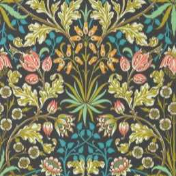 J.H. Dearle's 1911 pattern is given an unmistakable carnivalesque colour change. Crimson reds and cosmic pinks frame the curious Hyacinth pattern noted for its profusion of flowerheads connected by arcing tendrils.
