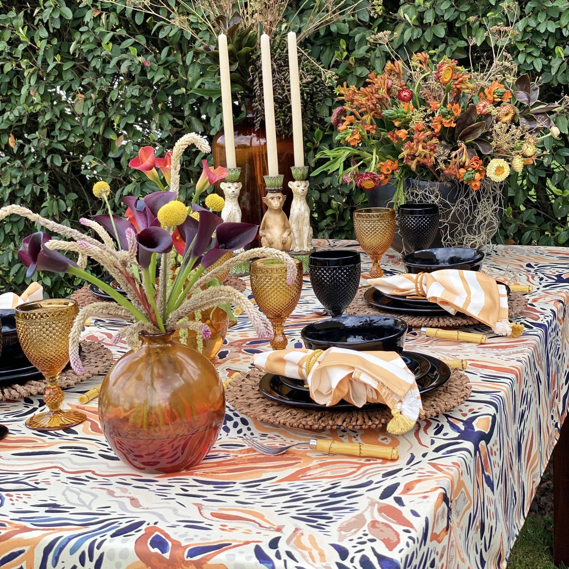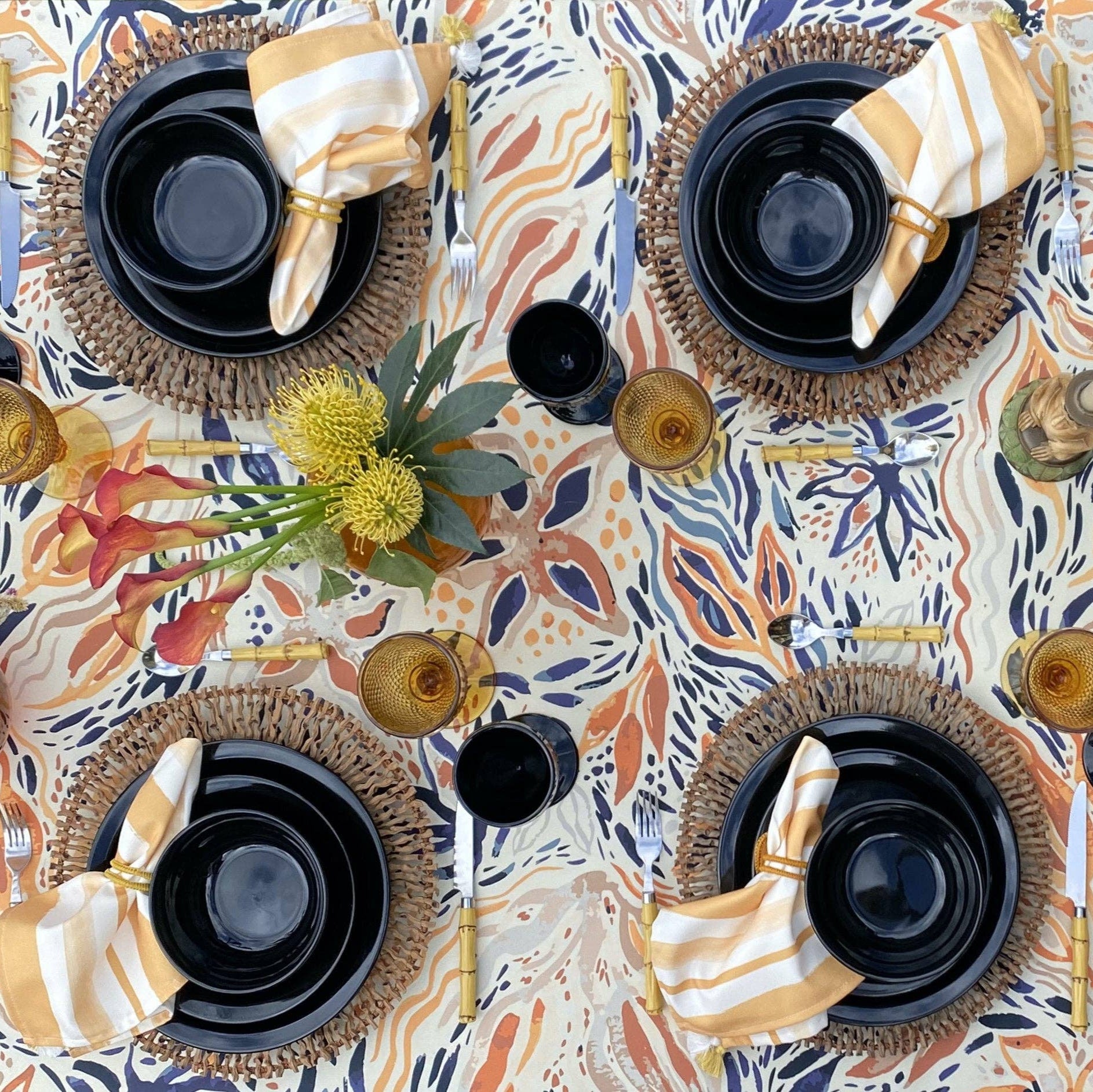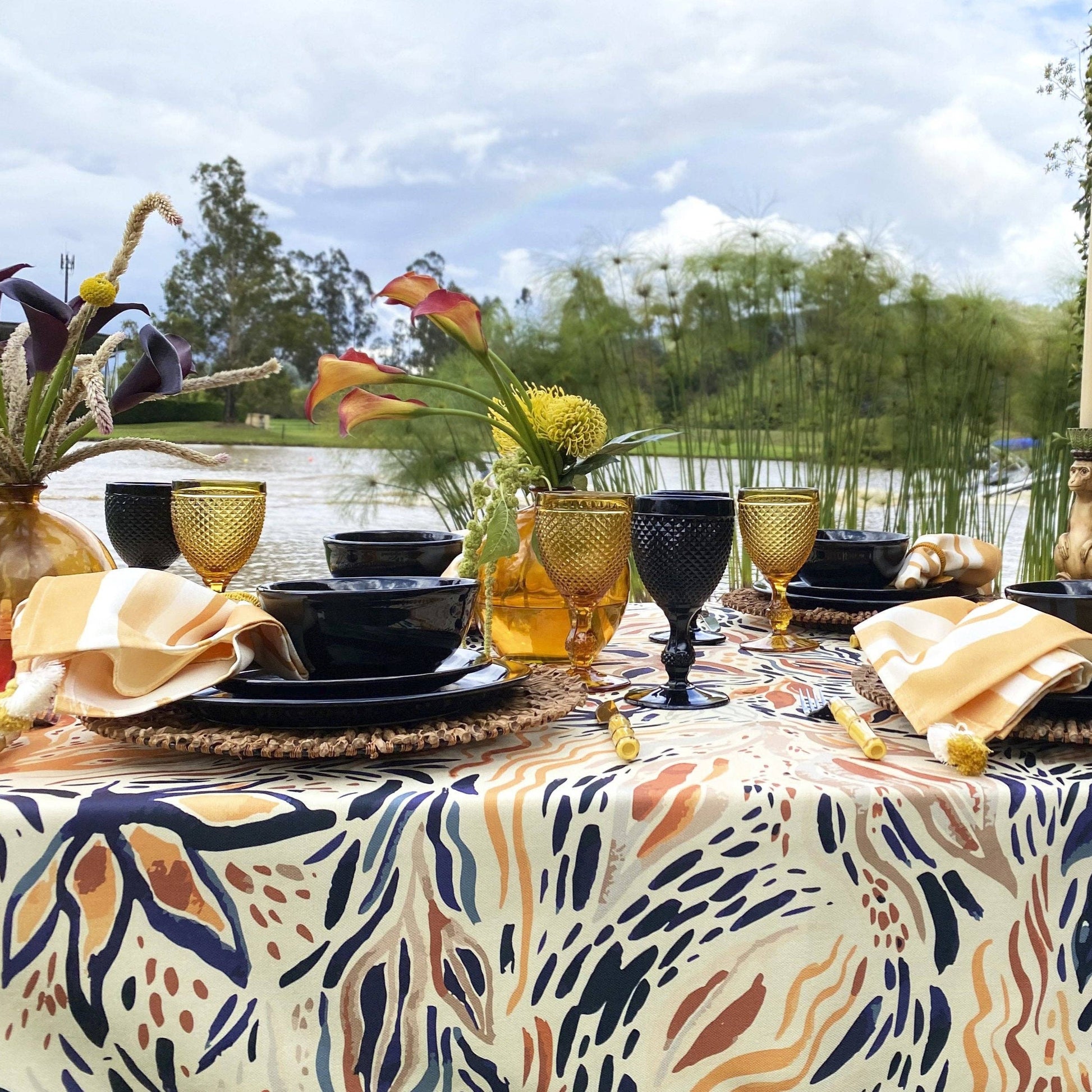 From classic styles to modern designs, our tablecloths are perfect for any occasion. Color: mix colors 100% recycled polyester from PET bottles Liquid repellent, and stain-resistant * Machine wash at low temperature (max 30ºC/86ºF) * Remove the tassels before washing (tablecloths and table runners) * Hand wash products with fixed tassels (napkins, placemats, and pillow covers) * Do not use bleach or fabric softener * Iron at low temperature with a protective cloth or inside out * Do not use the dryer machine