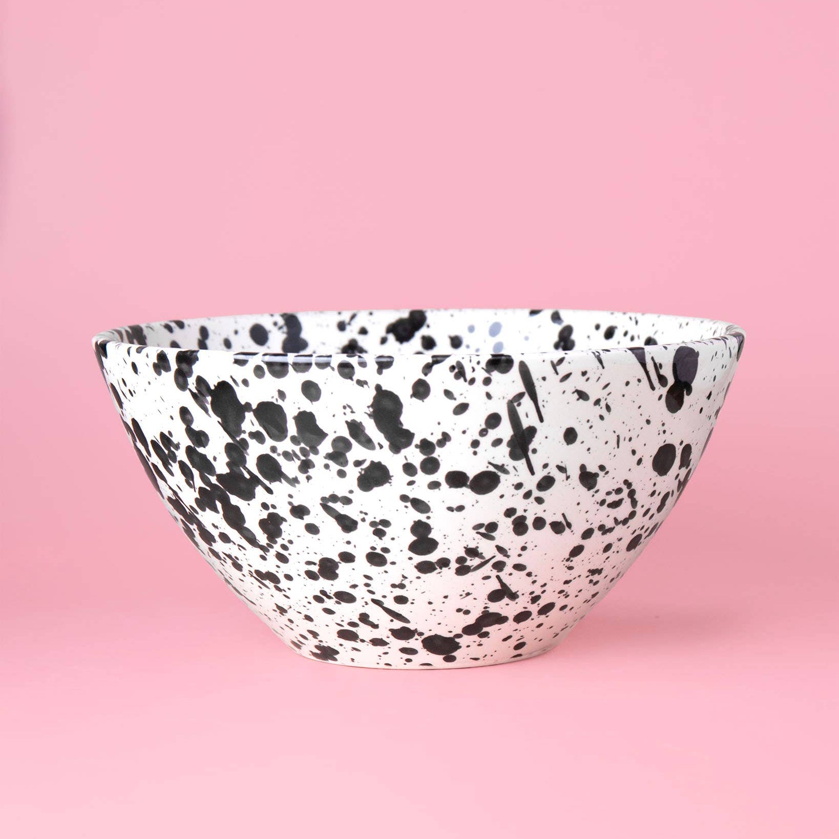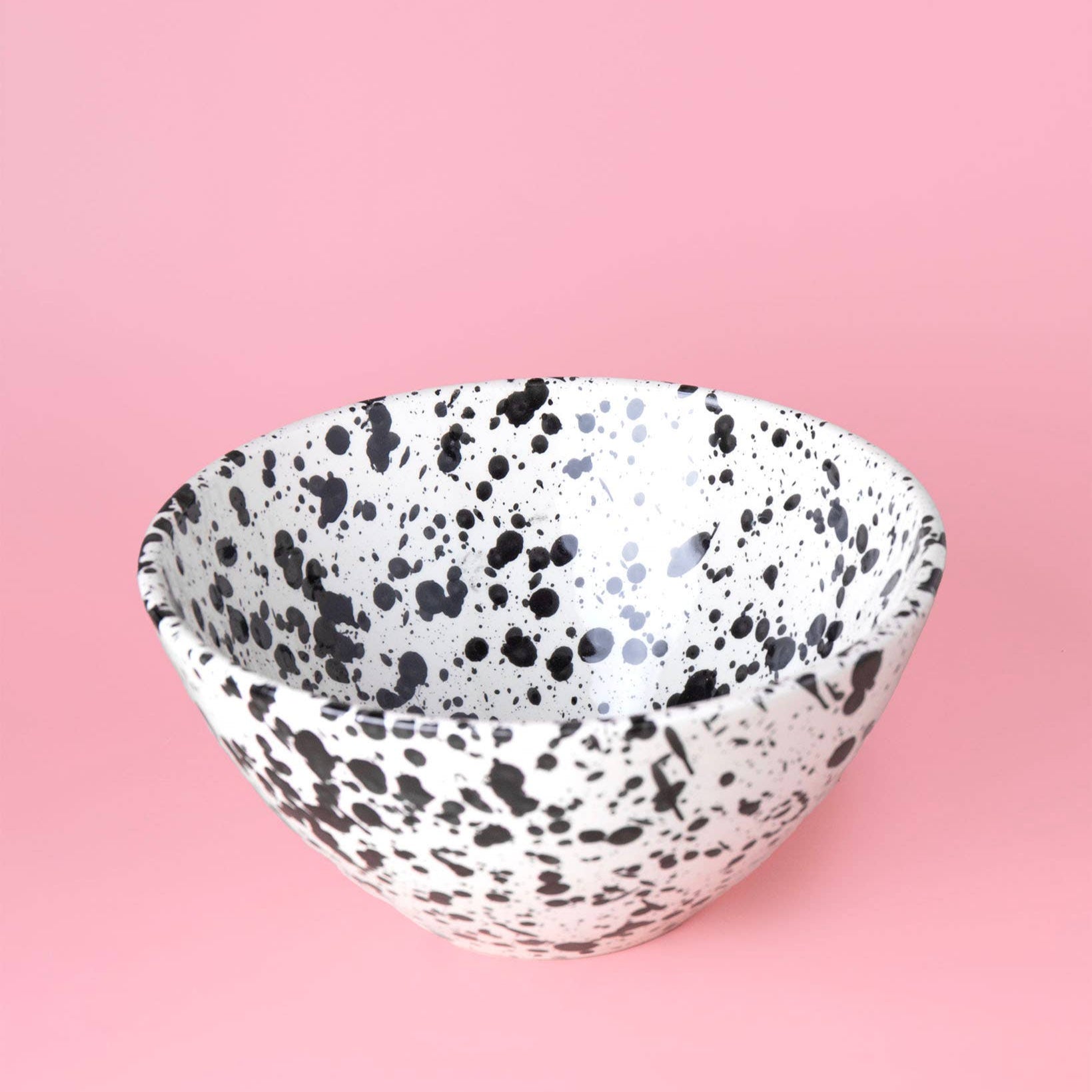 Handmade in Spain, this artisanal ceramic bowl features a one-of-a-kind glazed finish in crisp white with speckled black detailing. Each piece is crafted individually, with subtle variations that highlight its uniqueness. Cadmium - and lead-free, its safe for everyday use. Dishwasher and microwave safe.