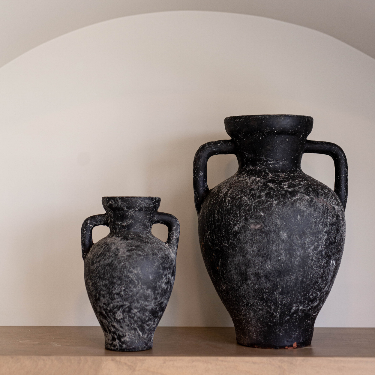 A striking statement in form and finish. The Eclipse is a textured urn-style vase in a deep, stormy grey. perfect as a statement piece or layered into a dramatic vignette with dried florals.
