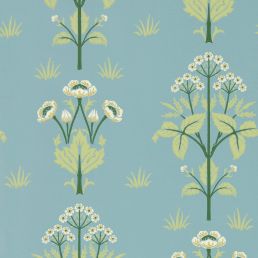 Whimsical and full of nostalgic charm symmetrical plant motifs are formally arranged over this wallpaper typical of the Arts & Crafts style. Originally designed by J.H. Dearle in 1904 Meadow Sweet takes beautifully to its light airy colorways but truly stands out with color-rich Blush and Mineral Blue.