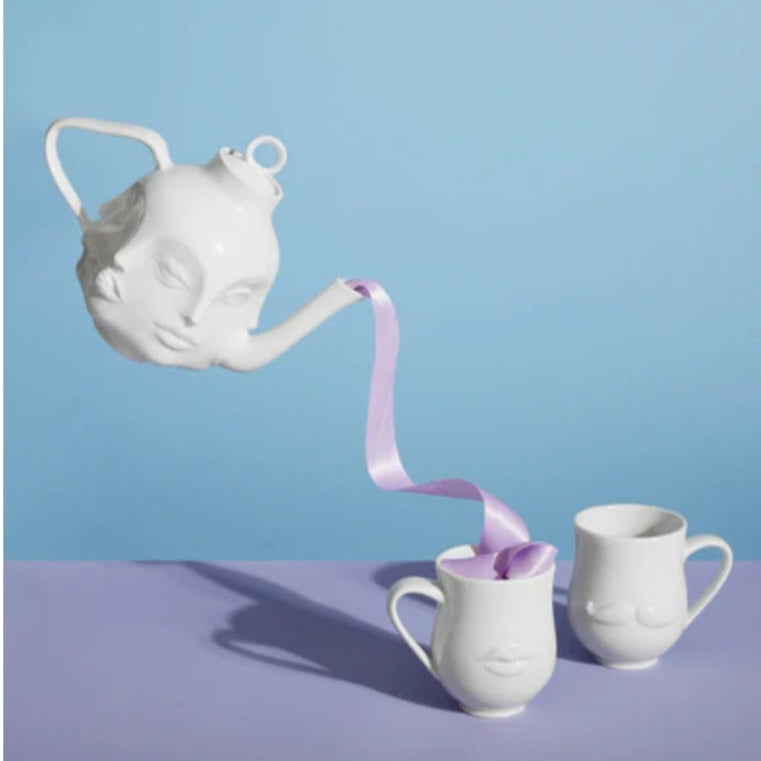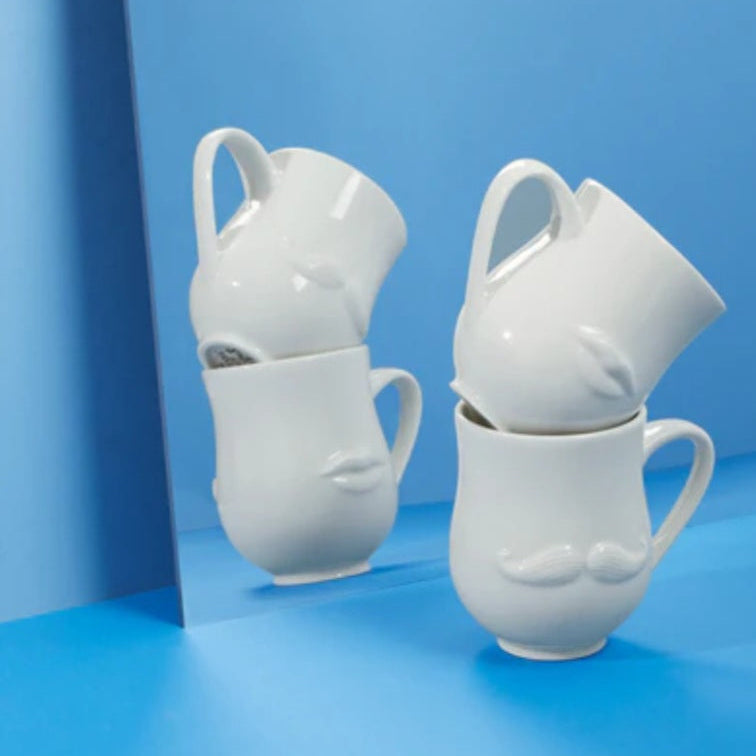 Mustache on one side, bold lips on the other - these double sided Mr. & Mrs. Muse Mug is a literal his-and-hers moment, inspired by surrealist icon Salvador Dali and pianist Misia Sert, who served as a muse to numerous artists, including Renoir.