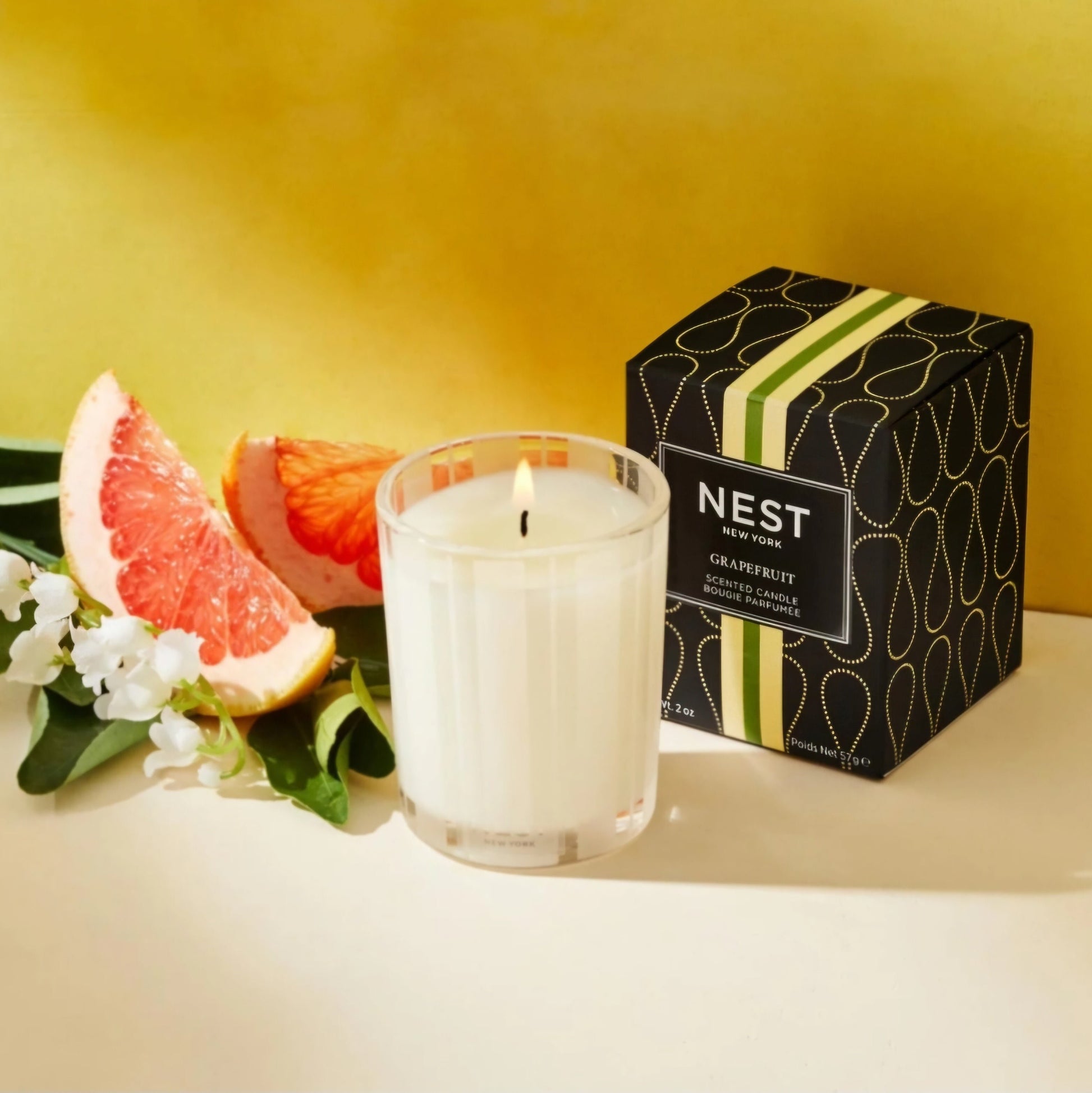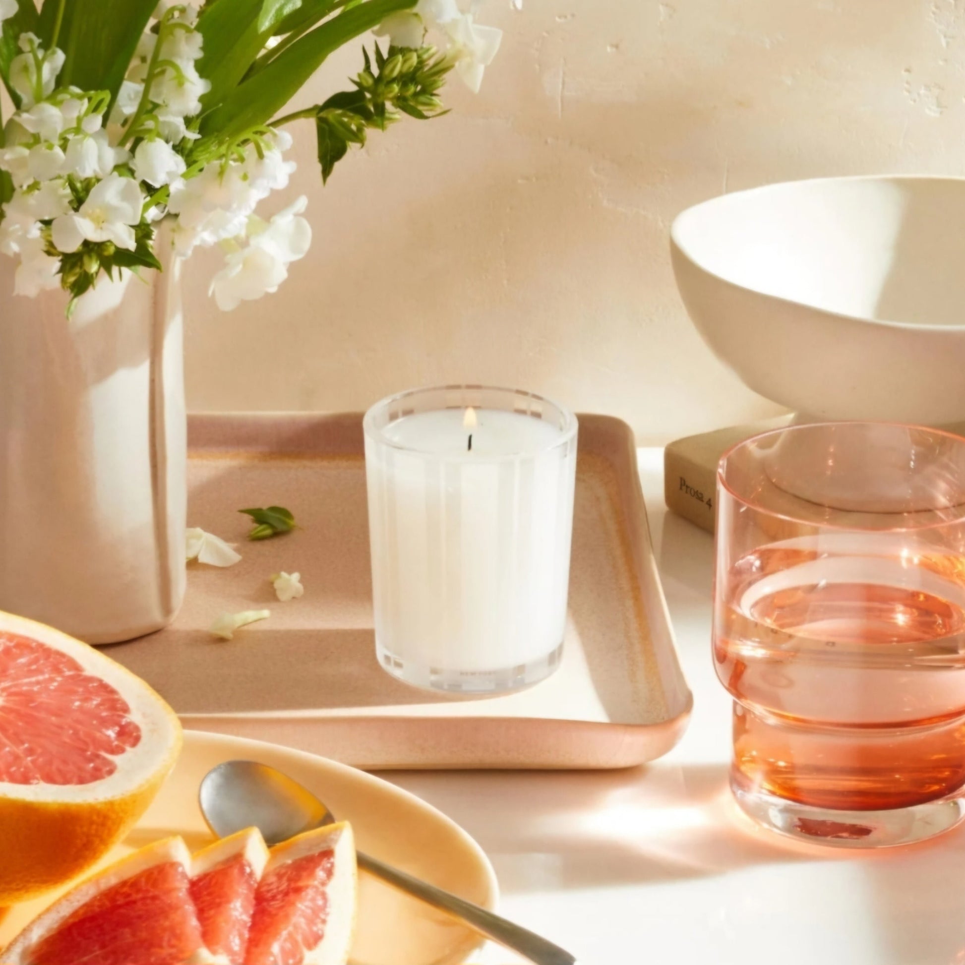 Elevate your senses with our best-selling Grapefruit fragrance. This scent captures an invigorating blend of pink grapefruit, sunny yellow palm, and fresh green notes, softened with lily of the valley and coriander blossom,