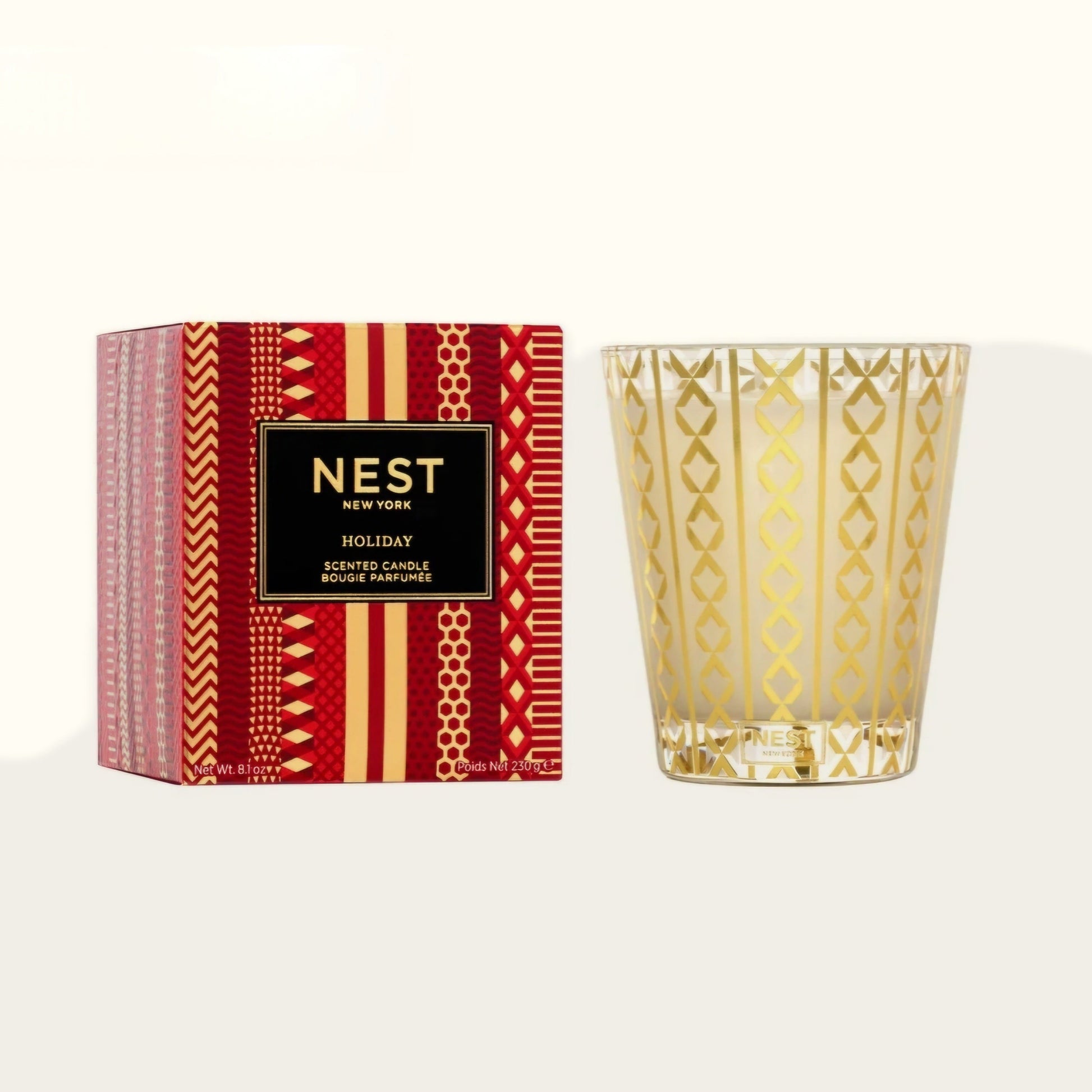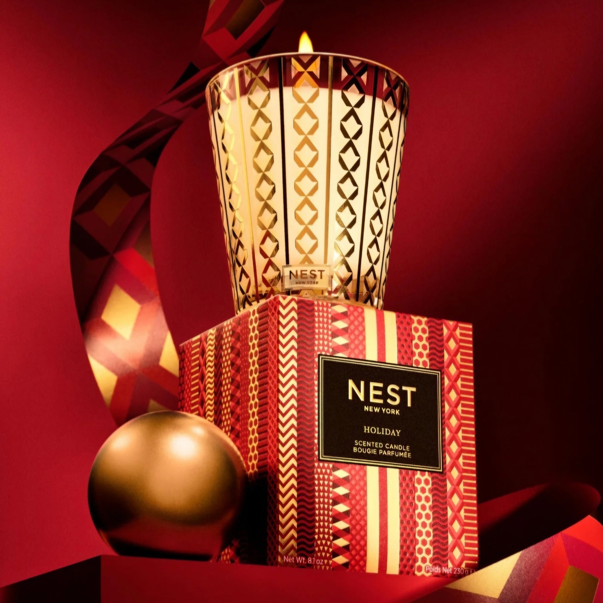 Create the quintessential aroma of the season with this best-selling fragrance, Holiday. This exquisitely fragranced classic candle features the iconic scents blend of pomegranate, mandarin orange, pine cloves, and cinnamon with a hint of vanilla and amber.