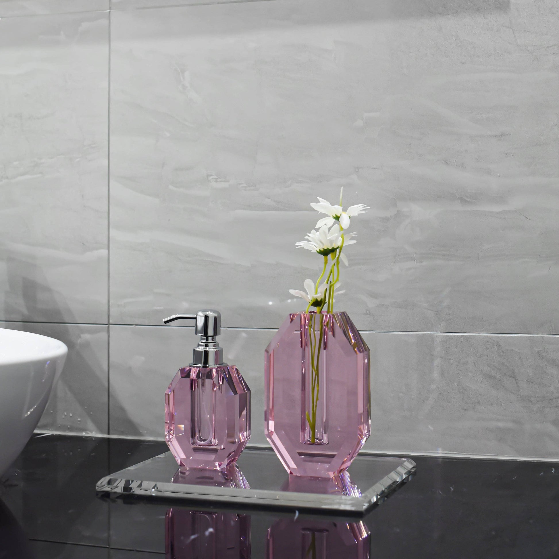 A striking blend of function and beauty, this crystal soap dispenser adds a touch of luxury to any vanity or sink.