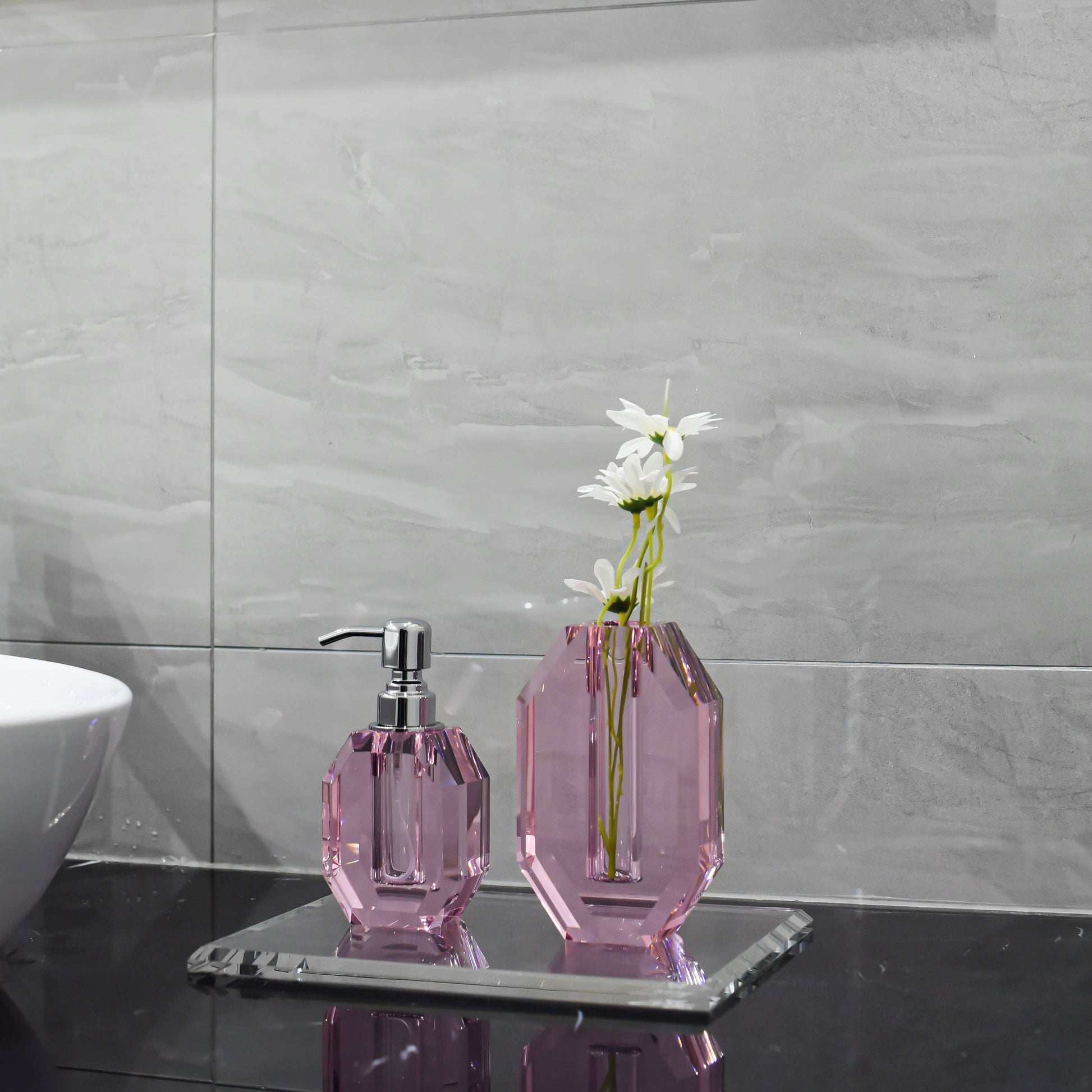 OCTAGON CRYSTAL VASE: PINK