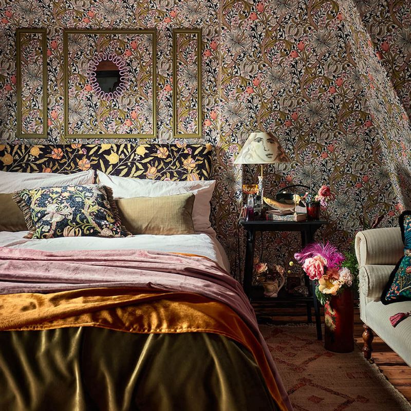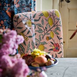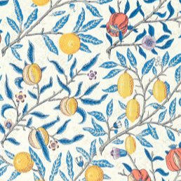 Tempting pomegranates or zesty lemons which do you see? Whatever your perception you're looking at one of the first wallpapers William Morris ever made translated into fabric. Reimagined in three color stories from popping pinks to serene blues and verdant greens this is one fruit that never over-ripens.
