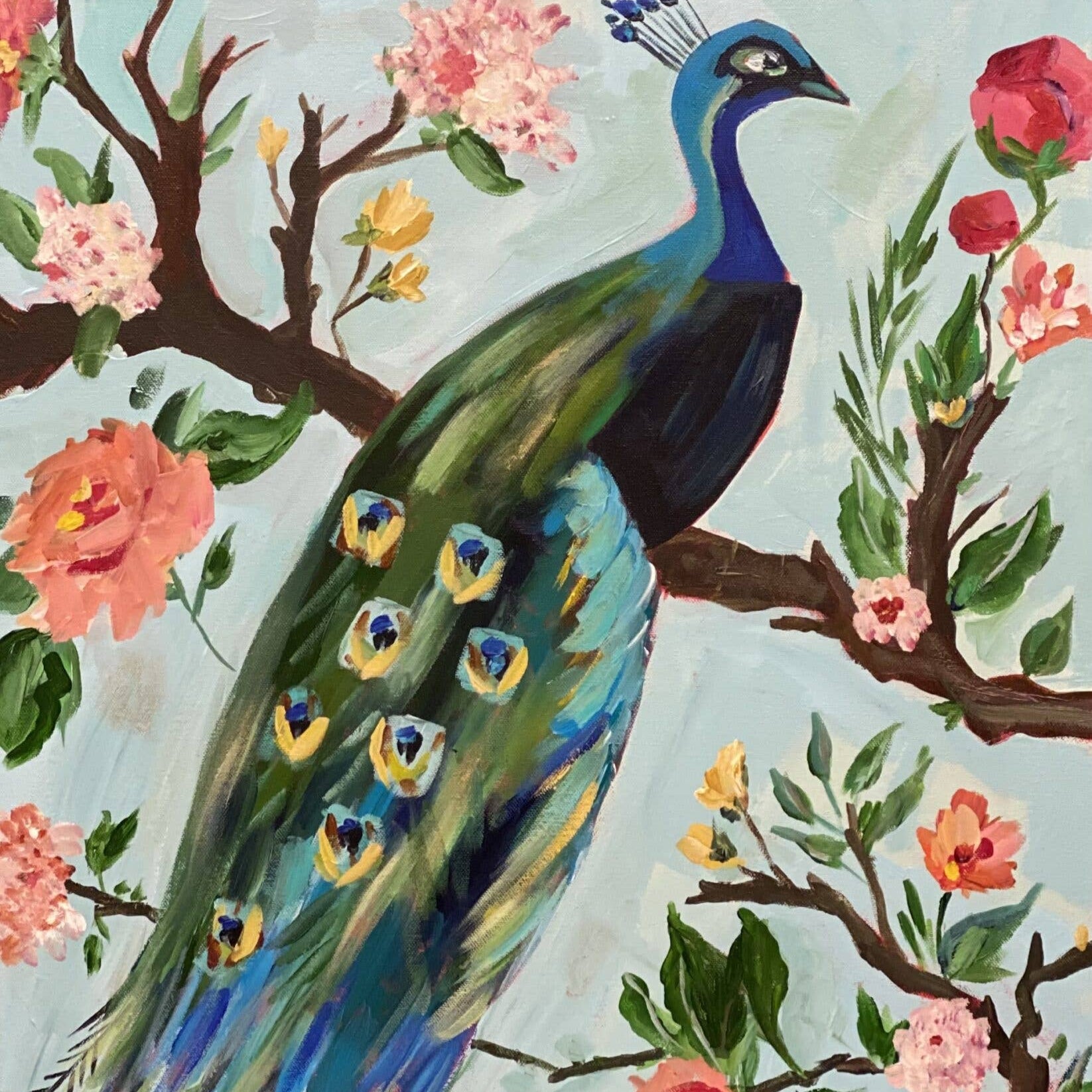 Vintage blooms and a peacock in full flourish - double-sided for twice the charm. Designed with artwork from original paintings.