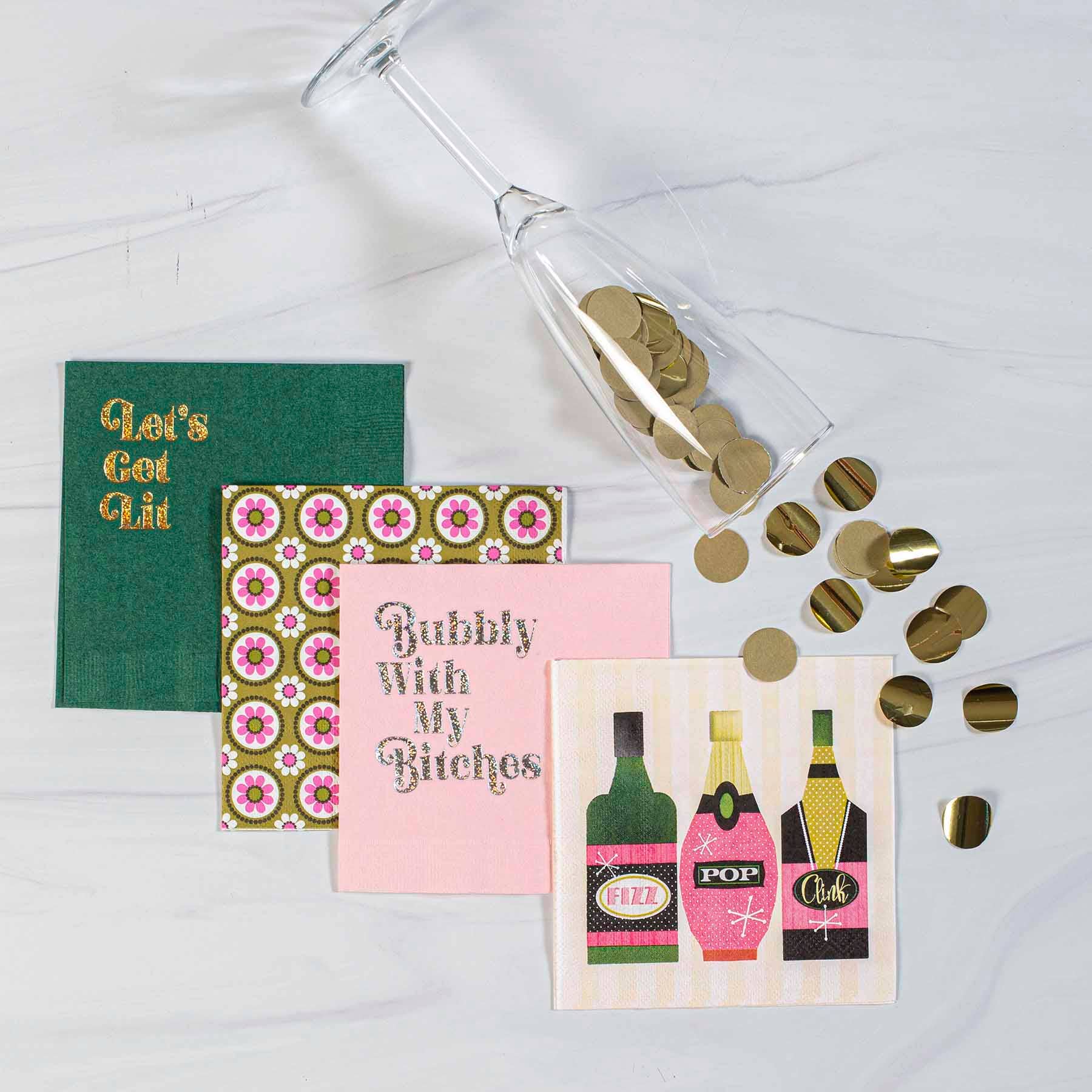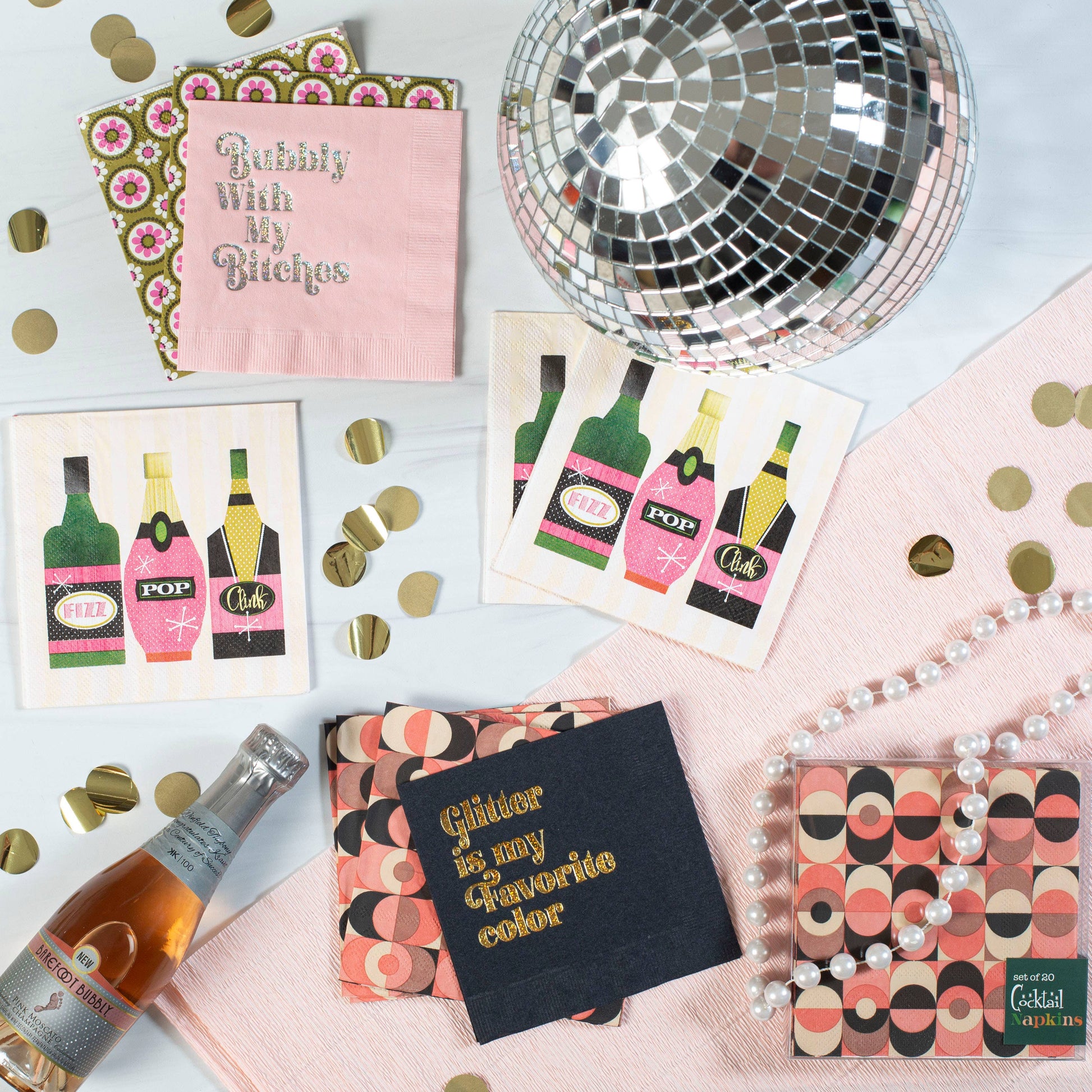 Add a mid-century modern touch and inject a little glitz and glamour into any celebration with these stylish napkins. Clink-clink!