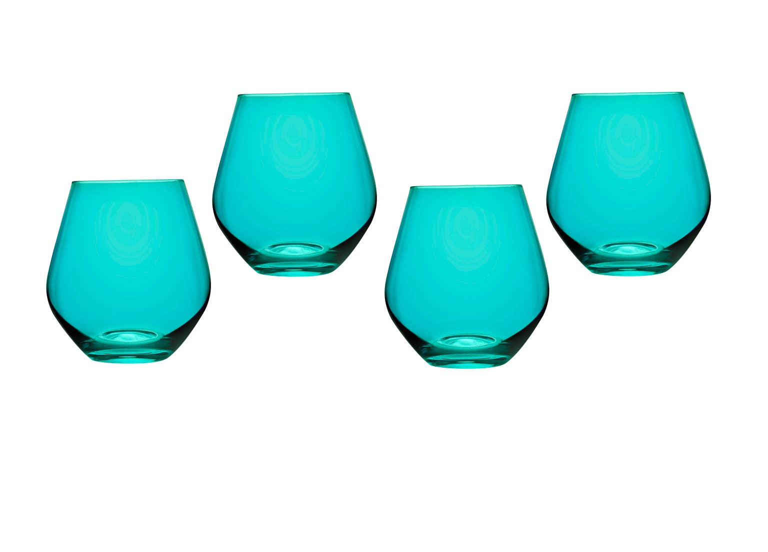 Sleek and modern, this set of four stemless crystal glasses comes in elegant teal or white. Perfect for wine, spritzers, or everyday sipping in style.