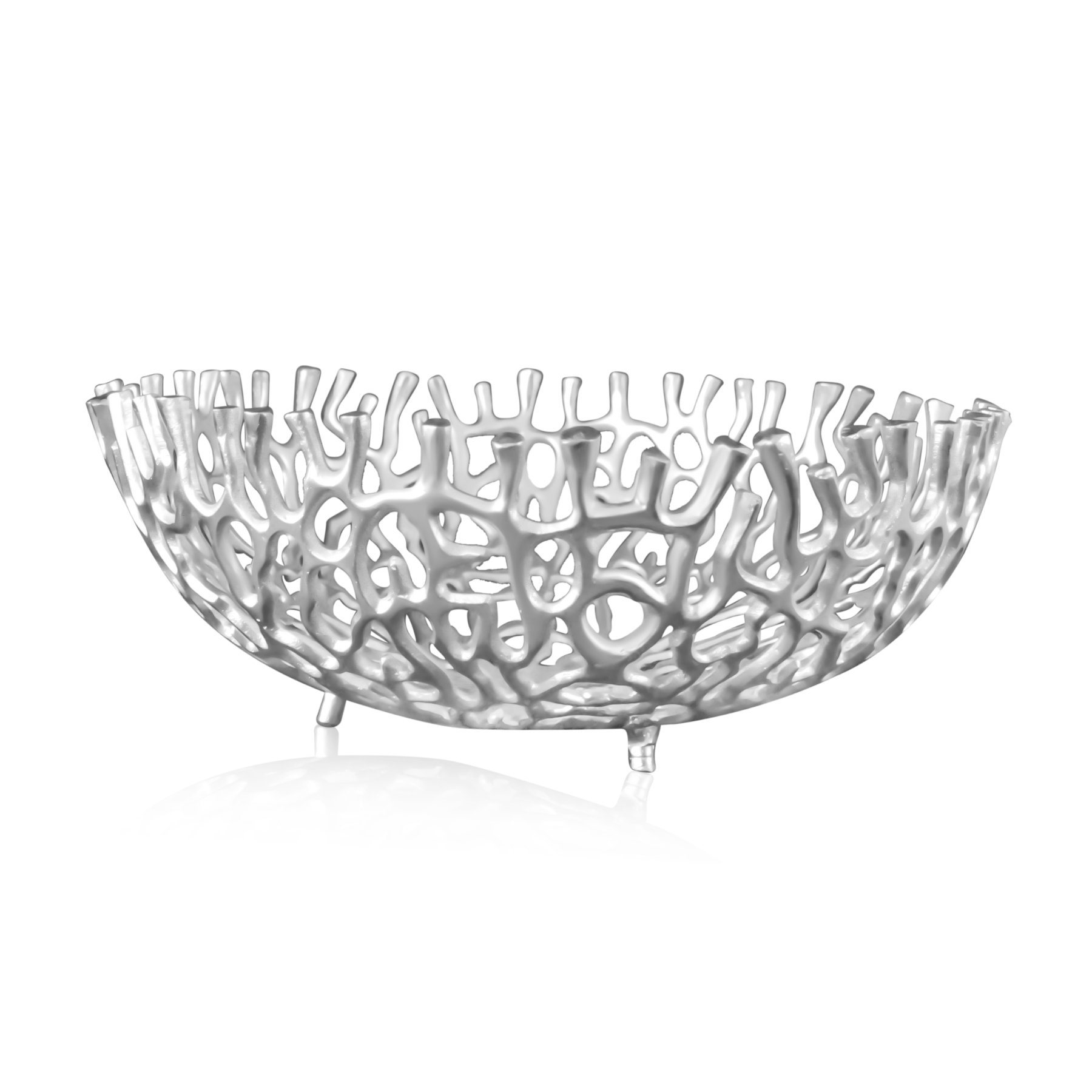| This Silver Round Coral Bowl, with a diameter of 20 inches, adds a touch of elegance to any setting. Perfect for both decorative and functional use, its intricate coral design and silver finish make it a standout piece in any home decor. |