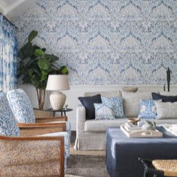 Slightly larger in scale than its fabric counterpart Severne was originally printed at Morris's Merton Abbey workshop in South London. An elegant damask of acanthus leaves framing a central flowerhead this is a new design for the Simply Morris collection.