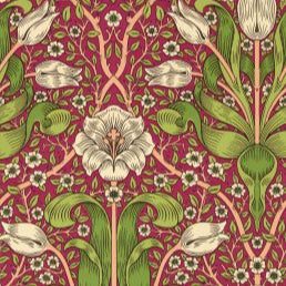 William Morris's last-ever pattern made for wallpaper is a mysterious brooding design from 1894. We've highlighted the beguiling foliage folds and tulip heads lending the impression the flowers might lurch free of the paper's surface. Choose the Fruit Punch colorway for a palette directly taken from the original design document stored in our archive.