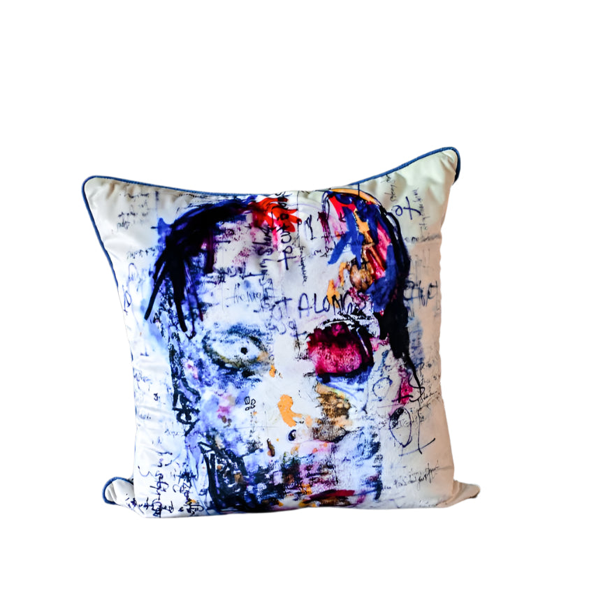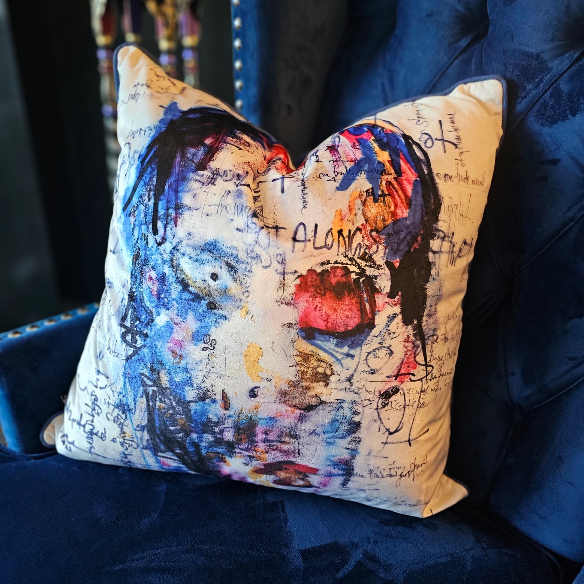 | This decorative pillow features a striking blue and off-white skull design, adding a touch of edgy elegance to any room. Perfect for those who appreciate unique and stylish home decor, this pillow combines comfort with a bold aesthetic. |