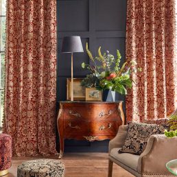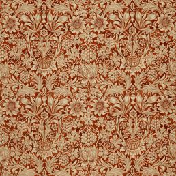 This striking pattern was first designed by William Morris in 1879 and displays a stylish sunflower on a sumptuous velvet ground. An elegantly relaxed semi-plain design across three dramatic color ways Sunflower Velvet is suitable for drapes and upholstery. The captivating Saffron/Vellum color way is new to this collection and provides an alternative take on a Morris classic.