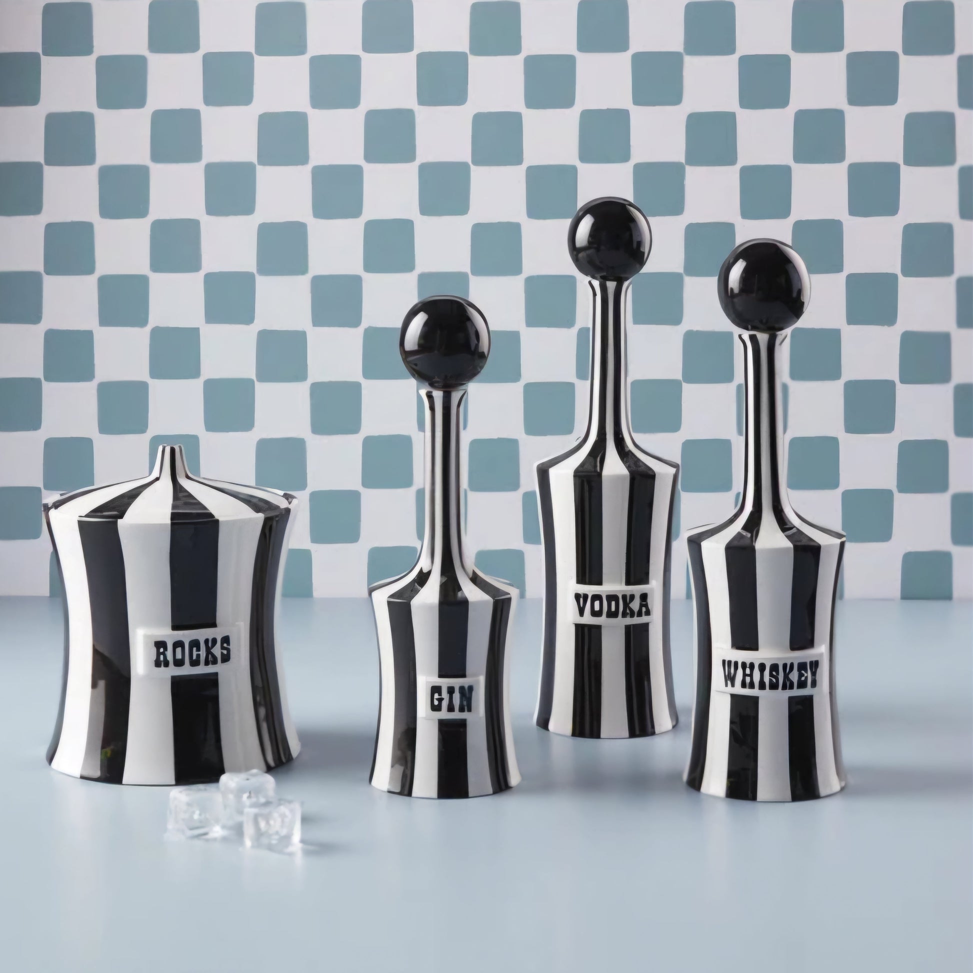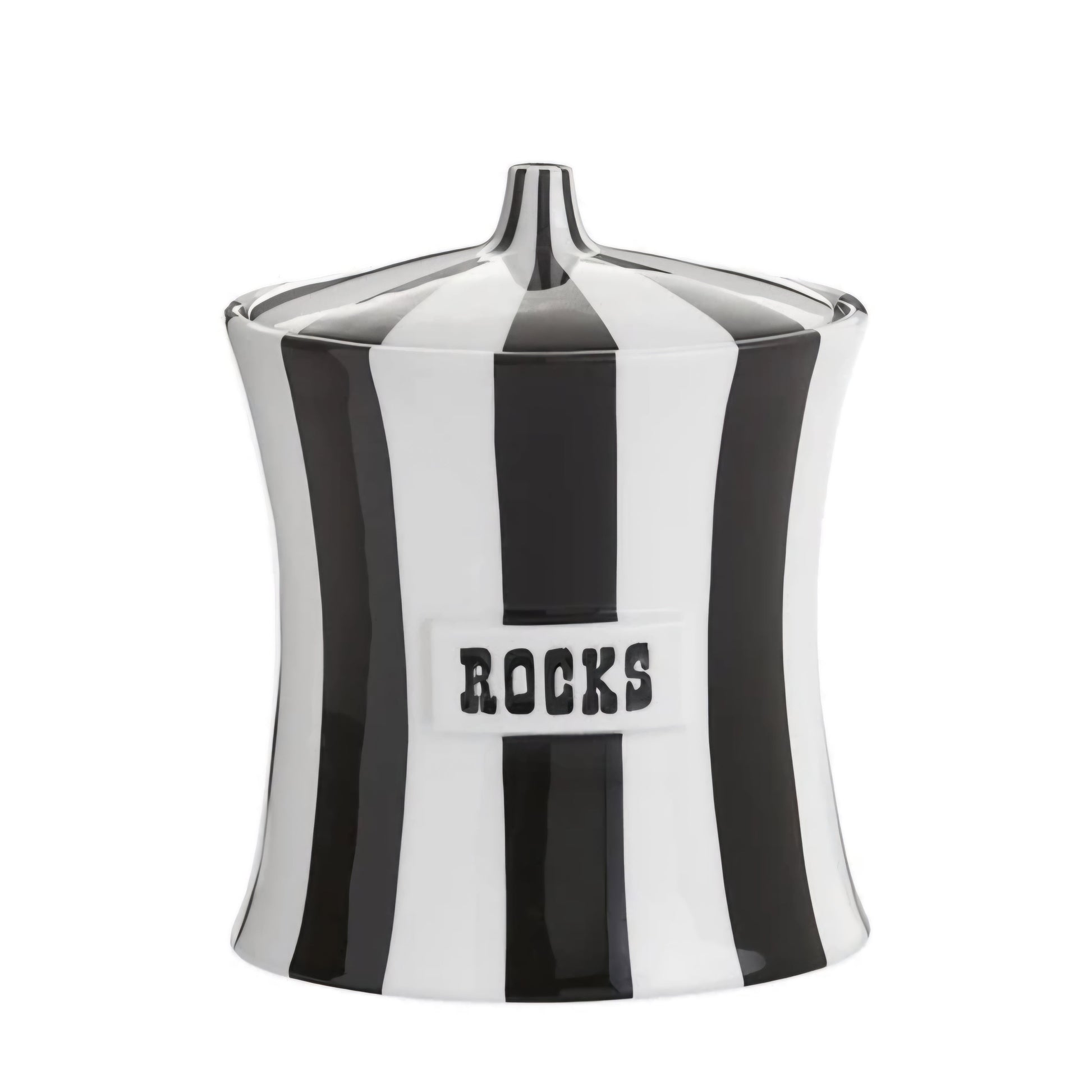 Jonathan Adlers iconic canisters take on a bold new role as the ultimate ice bucket your bar set up's been craving. Show off your cubes in hand - painted porcelain, dressed in striking black and white. Designed with a gasket sealed lid to help keep things cool.