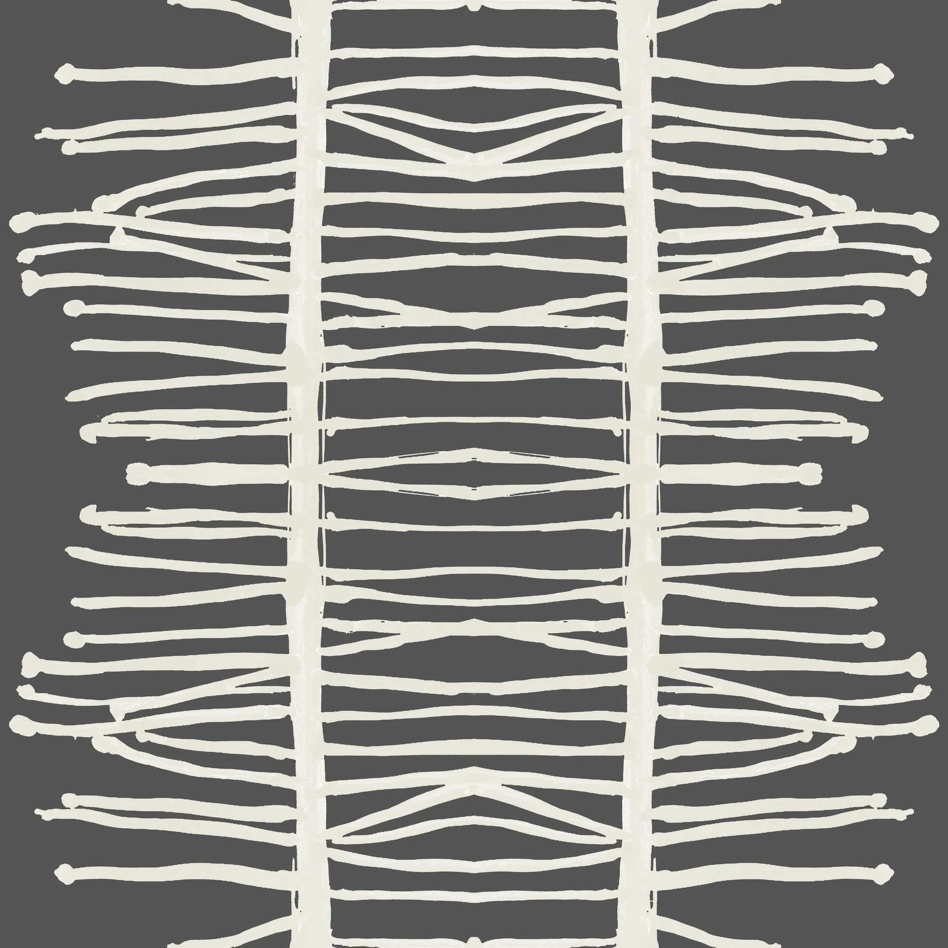 Cream Charcoal showcases a bold contrast between deep charcoal grey and a hand-drawn ivory pattern, creating a statement look with modern tribal energy. The organic lines bring an artisanal, sketch-like texture, while the neutral palette keeps it sleek and versatile. Perfect for moody interiors or contemporary spaces that crave a bit of edge and artistry — think urban loft meets global design.